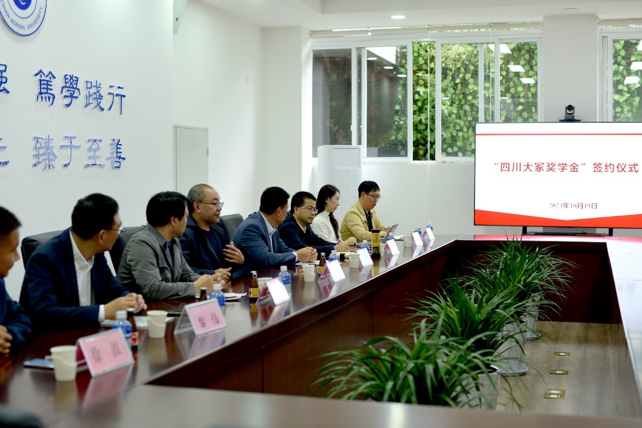 2023年10月19日,“四川大冢奖学金”签约仪式在乐山师范学院外国语学院举行。列席本次签约仪式的有四川大冢制药有限公司总经理王建涛、总经理室室长黎伟、总经理秘书眭欣茹、乐山师范学院校地合作处处长杜理才、外国语学院党委书记袁明锋、外国语学院院长江世勇、副院长徐波、副院长陈开富,外国语学院全体辅导员及部分学生代表。