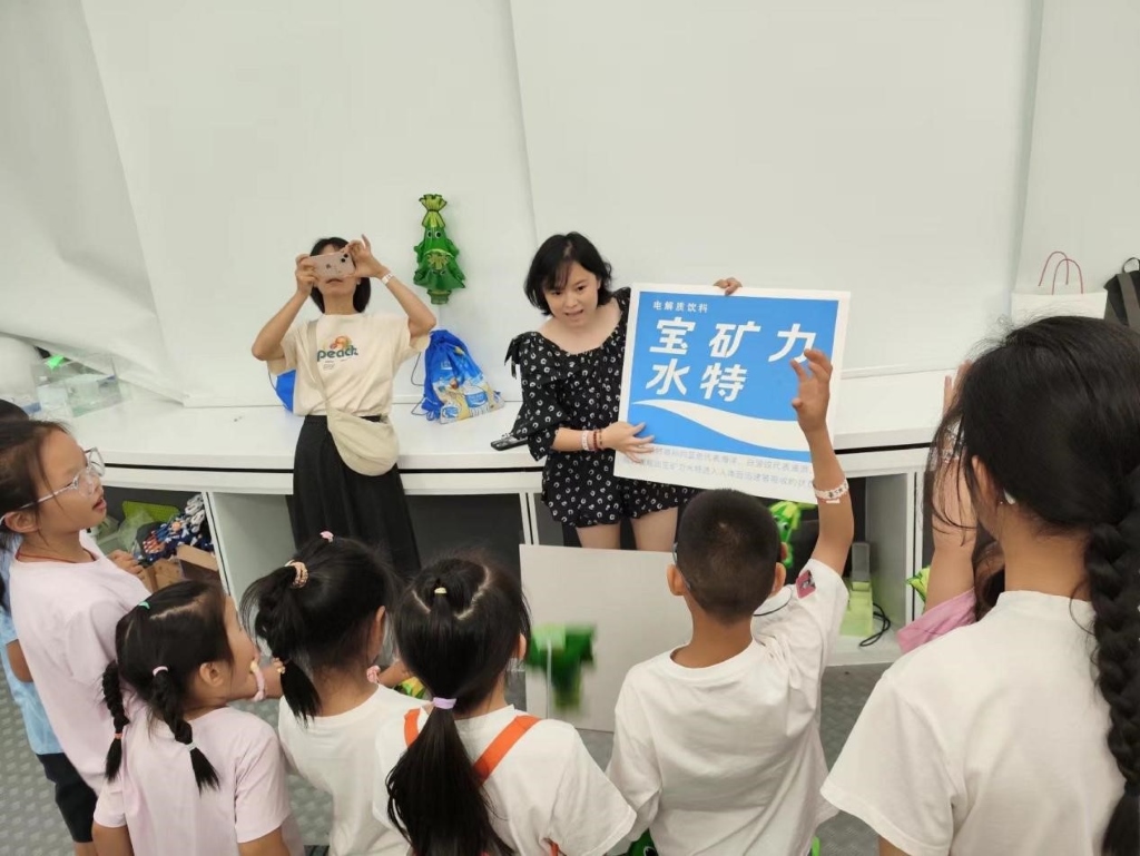 学习了生态环境中水的相关知识后,我们又给孩子们带来了当天另外一个很重要的主题那就是“人身体里的水”。让孩子们熟悉宝矿力的标识,了解它的功效,在积极的互动中,回答相关知识,获得小纪念品。这一天的活动中有宝矿力水特保驾护航,公司的优秀产品自此扎根在孩子的心里。
