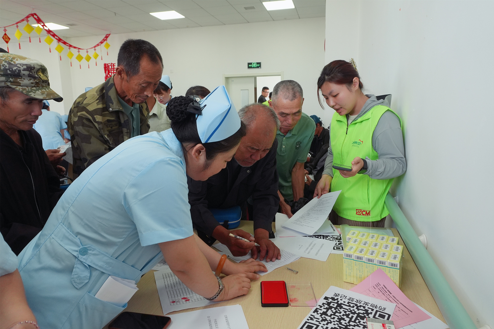 最后,现场的尘肺病病友们按照领用程序和工作人员指引有序申领本次的赠药和康复包,上午的启动仪式圆满结束。