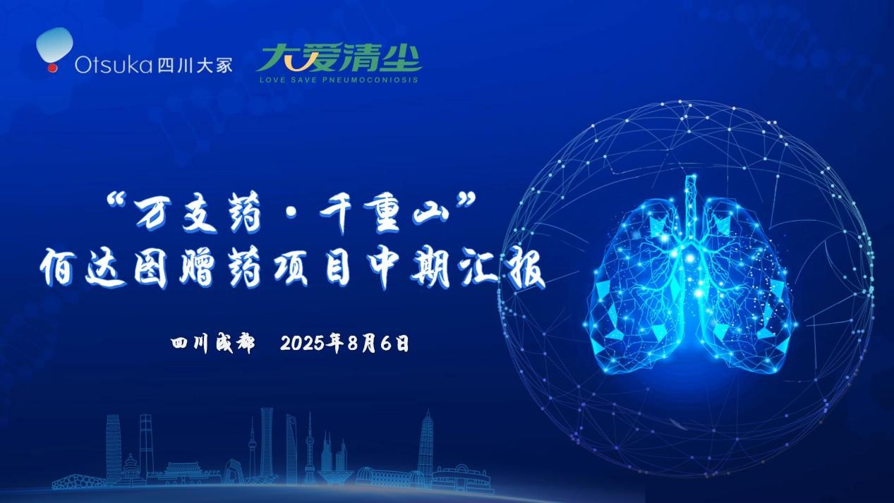 2025年8月6日,“万支药•千重山”佰达图赠药项目中期汇报在四川成都IFS一号办公楼LOP大会议室顺利举行。该项目由四川大冢制药有限公司向北京大爱清尘公益基金会捐赠10,000支佰达图®舒稳乐®(盐酸丙卡特罗粉雾剂),用于缓解尘肺病农民呼吸因呼吸受限引起的各种症状。截至2025年7月31日,四川大冢已通过大爱清尘向河南、湖南、湖北、辽宁、陕西、江西六个省份的16家合作医疗机构,累计发放药品6,063支,共惠及尘肺病农民2,021人,为众多患者带去了切实的健康支持。
