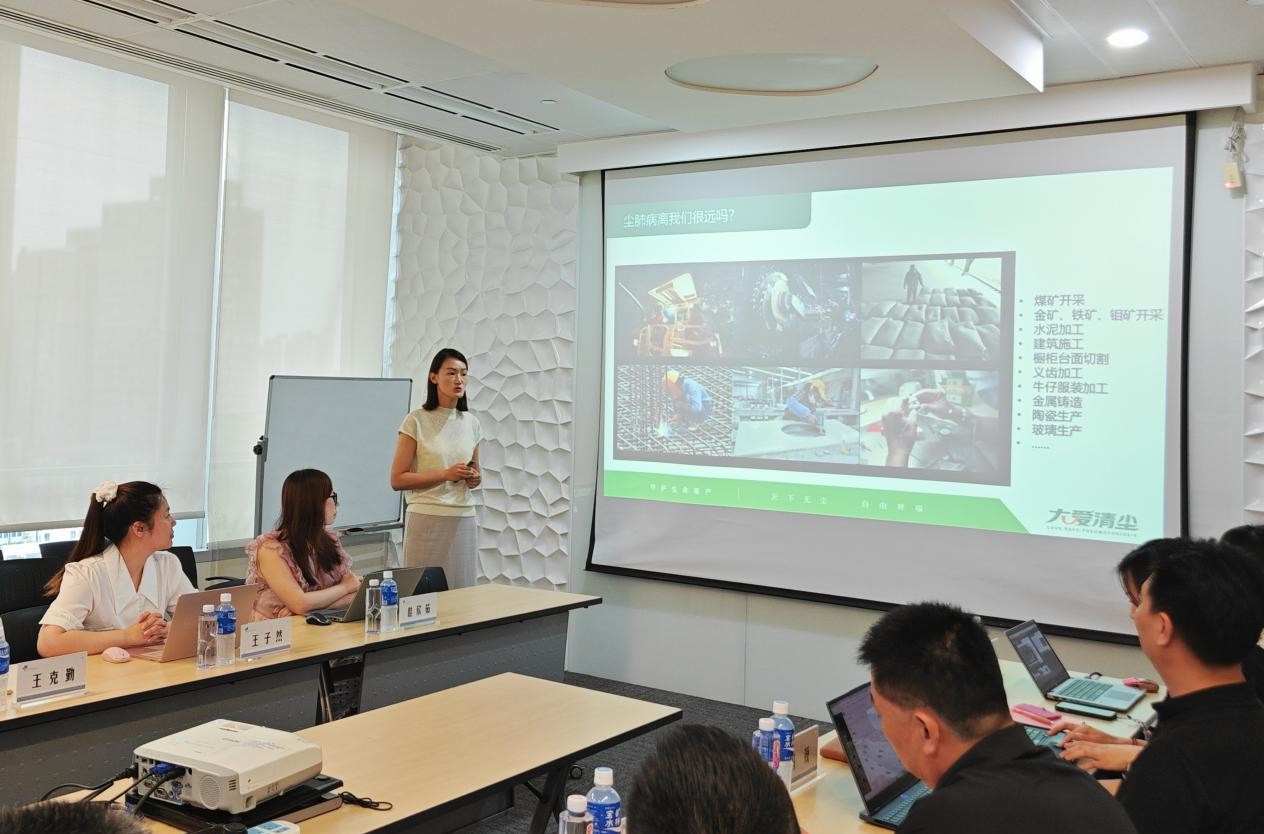 北京大爱清尘公益基金会秘书长方晓星介绍尘肺病议题及大爱清尘