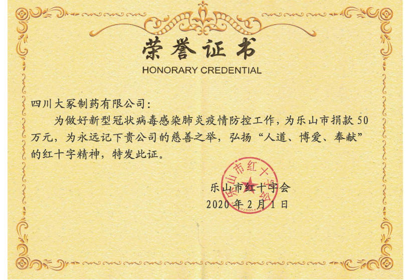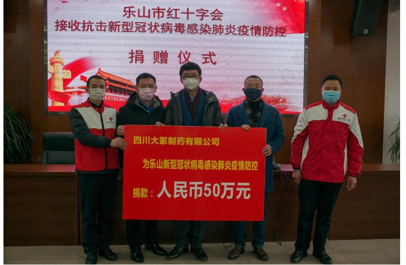 2020年1月31日,四川大冢制药有限公司向乐山市红十字会捐赠五十万元人民币,专项用于支援地方抗击新型冠状病毒感染肺炎疫情防控工作。